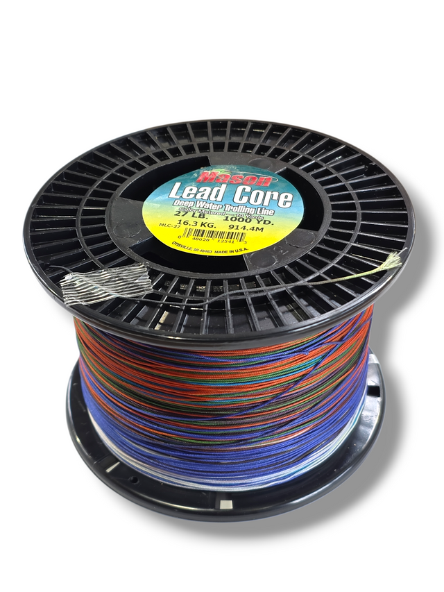 "LEAD CORE" Trolling Line. Mason is proud to offer Lead Core Deep Water Trolling line. This fast sinking line is composed of abrasion resistant Braided Nylon over a flexible lead core. It is color metered every ten yards with non fading dye for exact depth control. This smooth and easy to control line is a must for every deep water fisherman. Now available in 1,000 yard bulk spools!